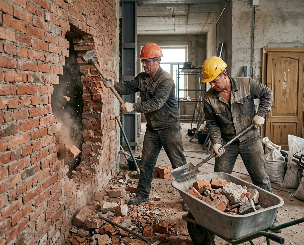 - Демонтаж стен и перегородок, демонтаж бетона;